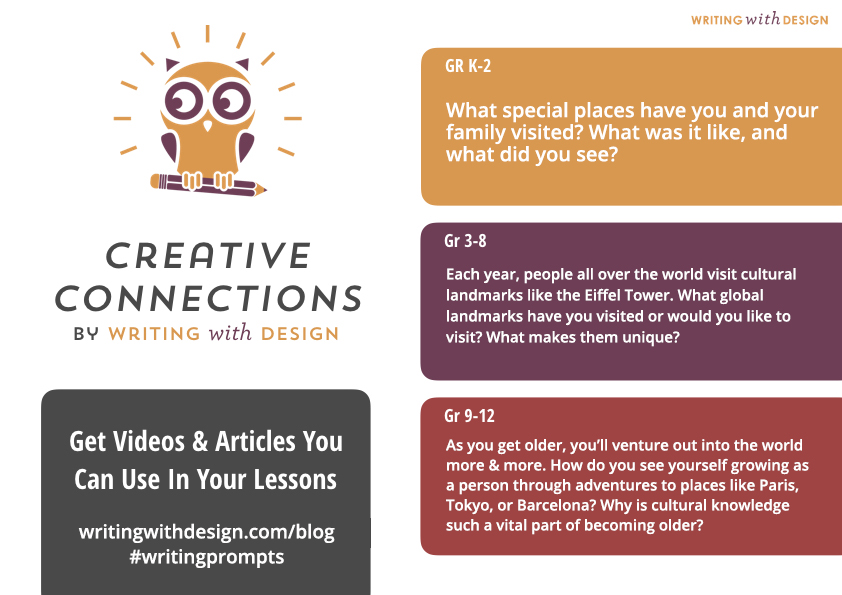 Today, with the anniversary of the Eiffel Tower opening, we had to get you some travel writing prompts that explored the theme of global landmarks. For our Writing with Design Creative Connections, we’re bringing you 3 prompts and 2 video links.